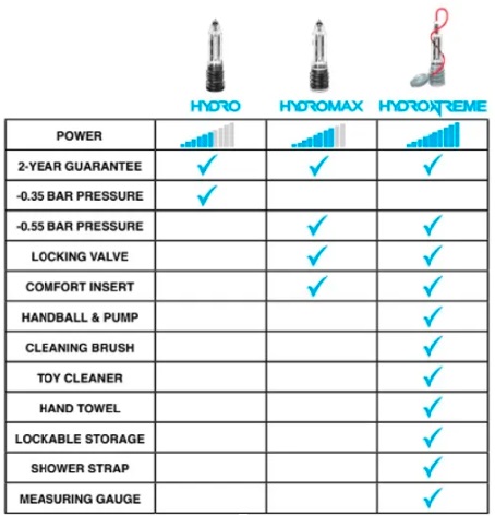 The Bathmate range of Hydro pumps operates using hydraulic pressure around the penis. Because the surface area of the penis is larger around the girth than it is the length, it is the girth that users will experience an increase in first, often resulting in them touching the sides of the pump meaning that the hydraulic pressure will not be able to expand the girth of the penis further. In addition, the hydraulic pressure around the penis reduces as the space increases, which is why in order to obtain maximum hydraulic performance, the correct size pump must be used.
